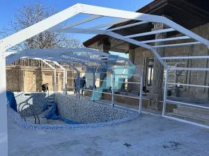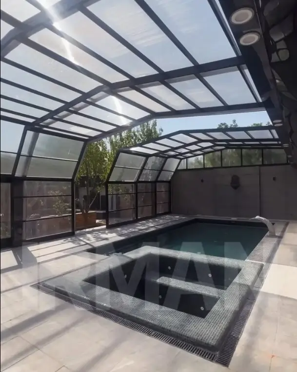 برای سرپوشیده کردن استخرها میتوان از سقفهایی از جنس پلی کربنات، ی وی سی و طلقهای شیشهای استفاده کرد.